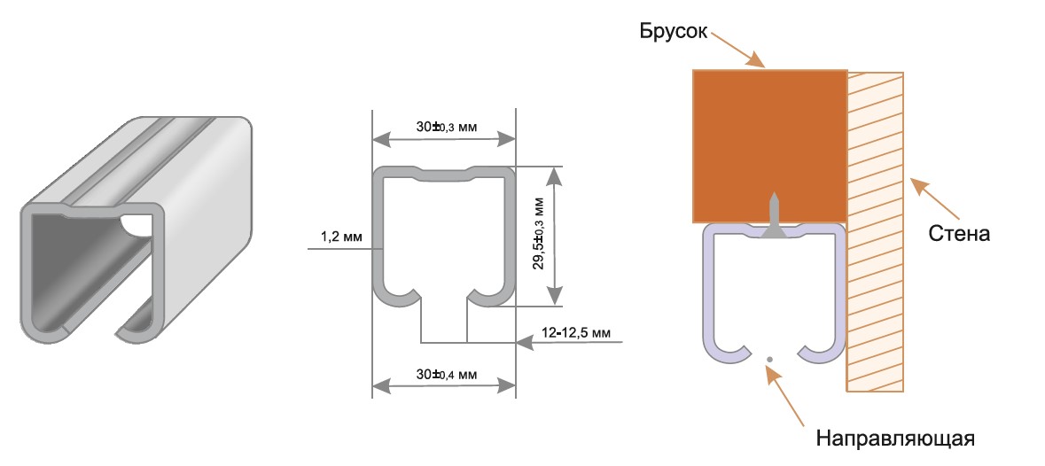 Направляющая верхняя для механизмов разждвижных дверей.Устанавливается на стену через деревянный брусок.